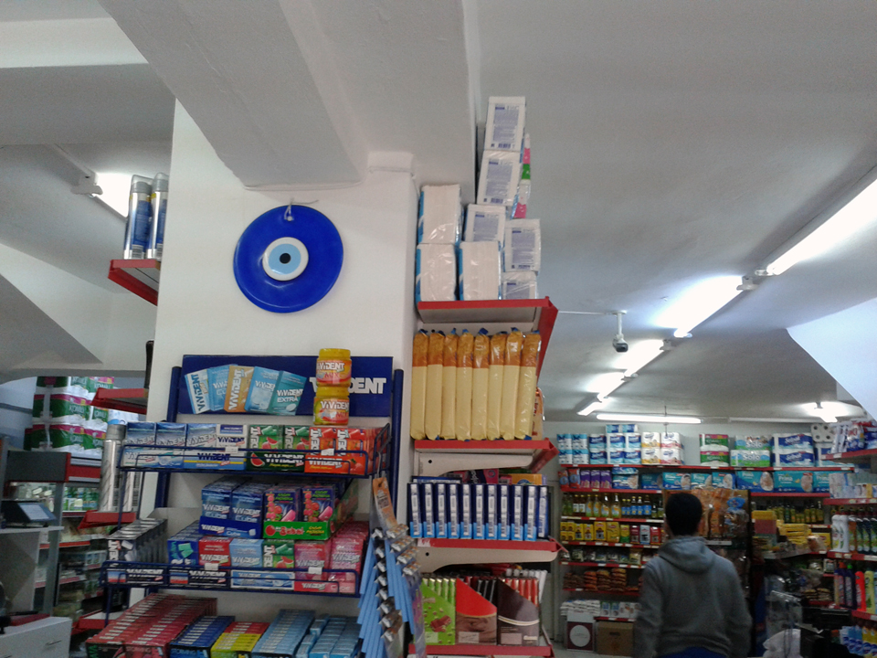 Blick-Perle, Nazar boncuğu, sagen sie hier dazu. Sie soll den bösen Blick abhalten, also jegliche Geister, Flüche und schadenbringende Einflüsse zur Strecke bringen, bevor sie ins Haus gelangen. Ein orientalisches Hufeisen, sozusagen.